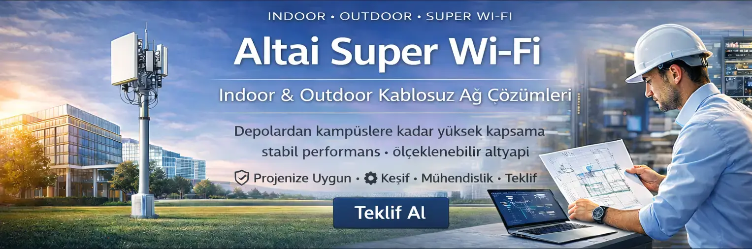 Bu yazıda Altai Technologies’in indoor ve outdoor Super Wi-Fi yaklaşımını; kurumsal ve endüstriyel kablosuz ağ ihtiyaçları açısından ele alıyoruz. Ofislerden depolara, üretim tesislerinden kampüslere ve geniş açık alanlara kadar farklı kullanım senaryolarında kapsama, performans ve ölçeklenebilirlik beklentilerinin nasıl karşılandığını inceliyoruz. Ayrıca Altai ürün ailesinin hangi senaryolarda öne çıktığını ve doğru ürün seçiminin projeye olan etkisini özetliyoruz.